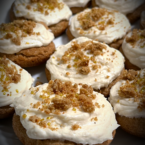 When ready to serve, apply frosting to each cookie. Cookies should be completely cooled to prevent softening and over-spreading of frosting. You'll use about 1/2-3/4 tablespoon for each cookie. Sprinkle with the cinnamon crunch cereal.