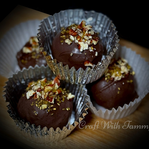 I have to confess to you that I was never a huge German Chocolate Cake fan. It was just never chocolatey enough for me. You know? Well this is my Hubby's favorite cake, and it's tradition that I make one every year for him. This year, he asked for a smaller cake with more frosting, so I did what any wife would do... I made it happen! With that, I ended up having cake batter left over and made extra cupcakes and of course I had extra frosting too! So what was a girl to do.... These little bite sized... well two bites... bundles of German chocolate deliciousness were born! They were created with toasted pecans, toasted coconut, mini chocolate chips and a sweet secret... As always, my favorite part of any truffle and/or cake pop is the snap of the chocolate shell.