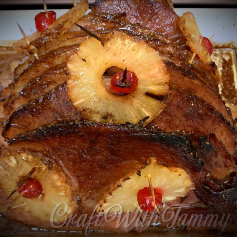 Combine dijon mustard and pineapple juice. Brush over ham.